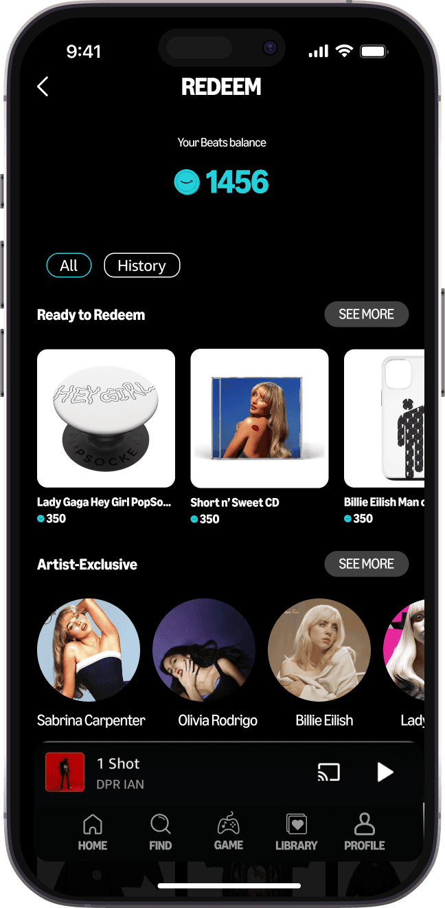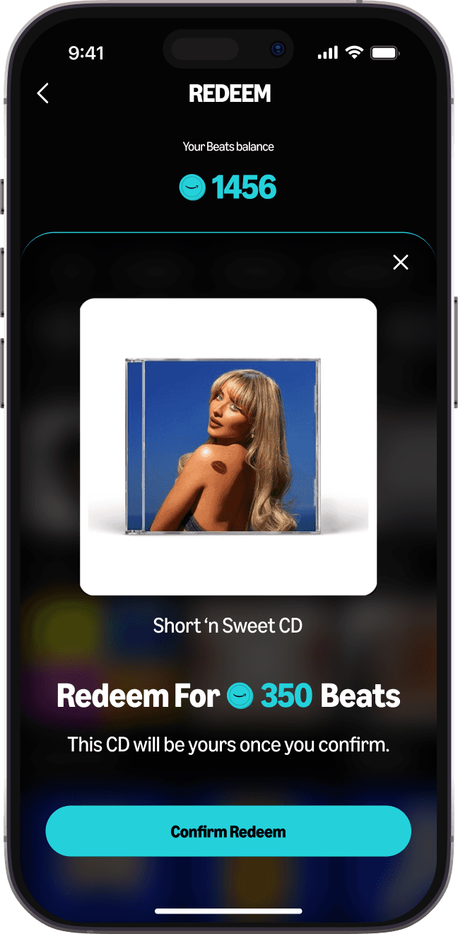 Every time a new level (Amazon and/or Artist BPM Level) is reached, listeners are rewarded with a form of coins called Beats. With Beats, they can redeem rewards in Reward Shop.