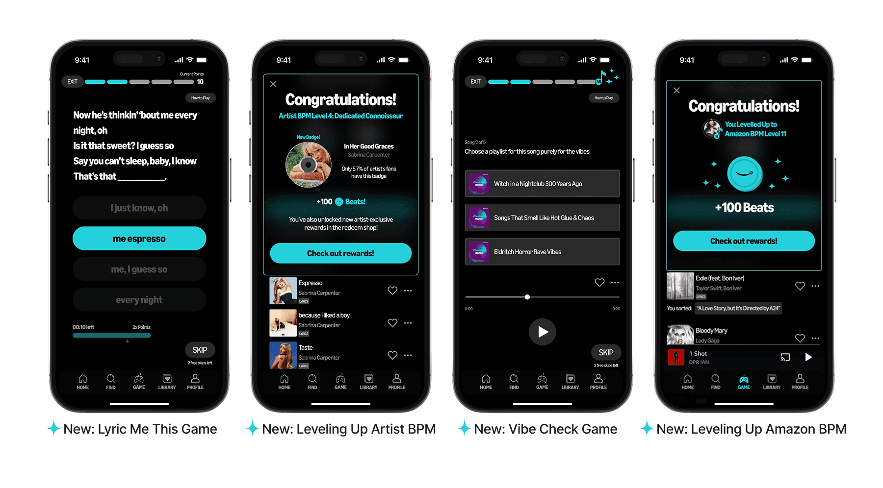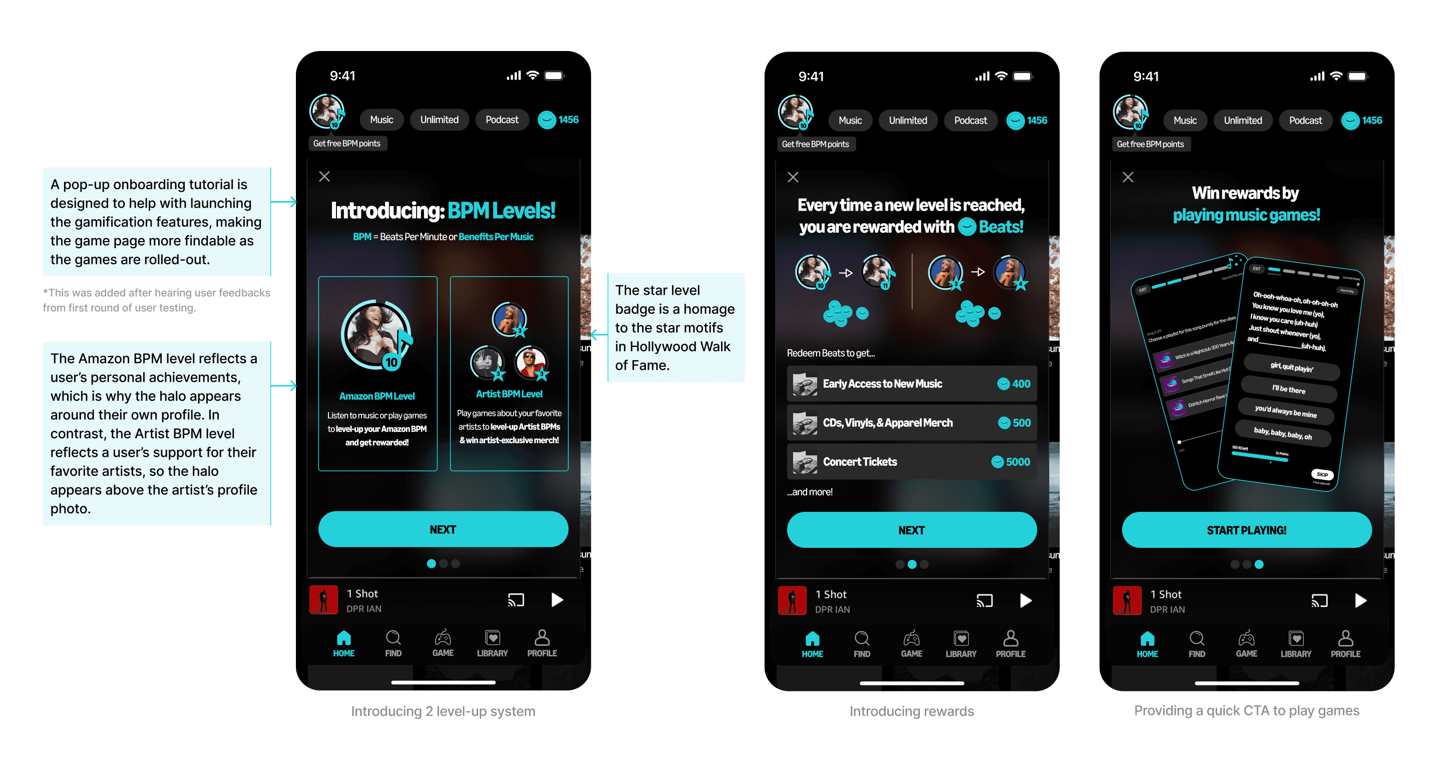 Designed a gamification system to boost music discovery and retention, allowing users to level up, earn rewards, and engage with artists through interactive games on Amazon Music.