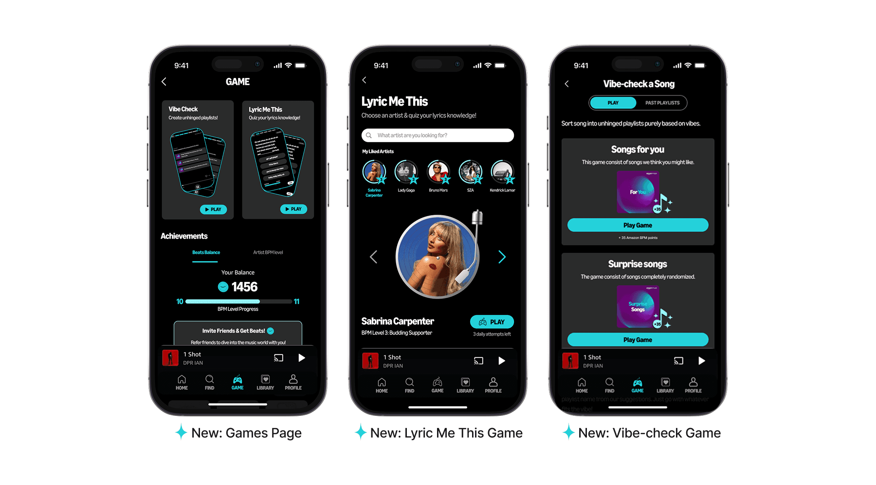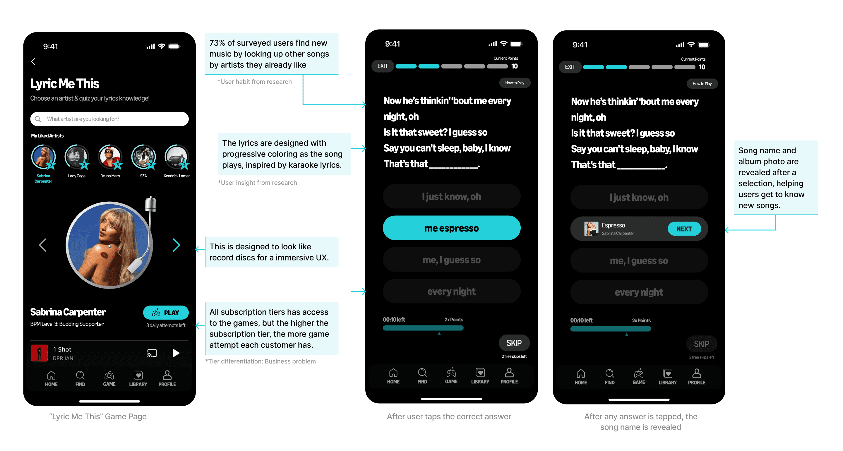 A currency system was sketched out & earlier version of Vibe-check and Lyric Me this was born!