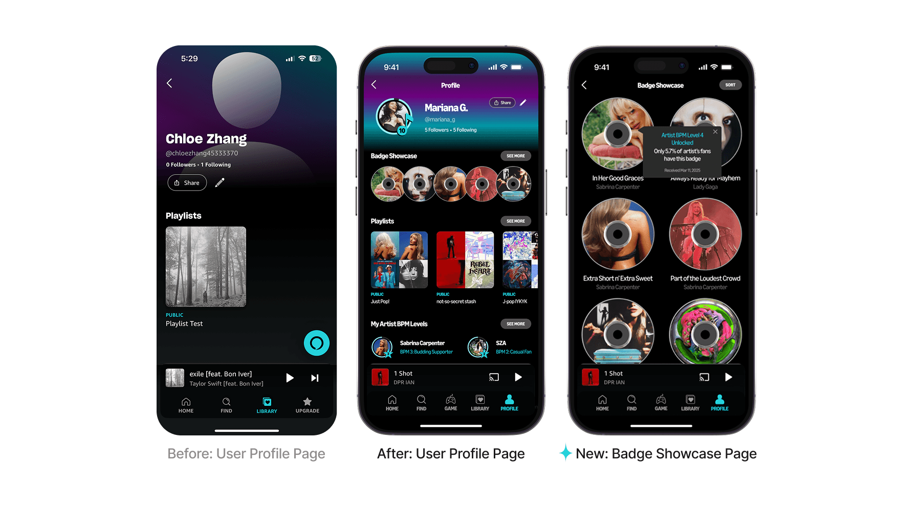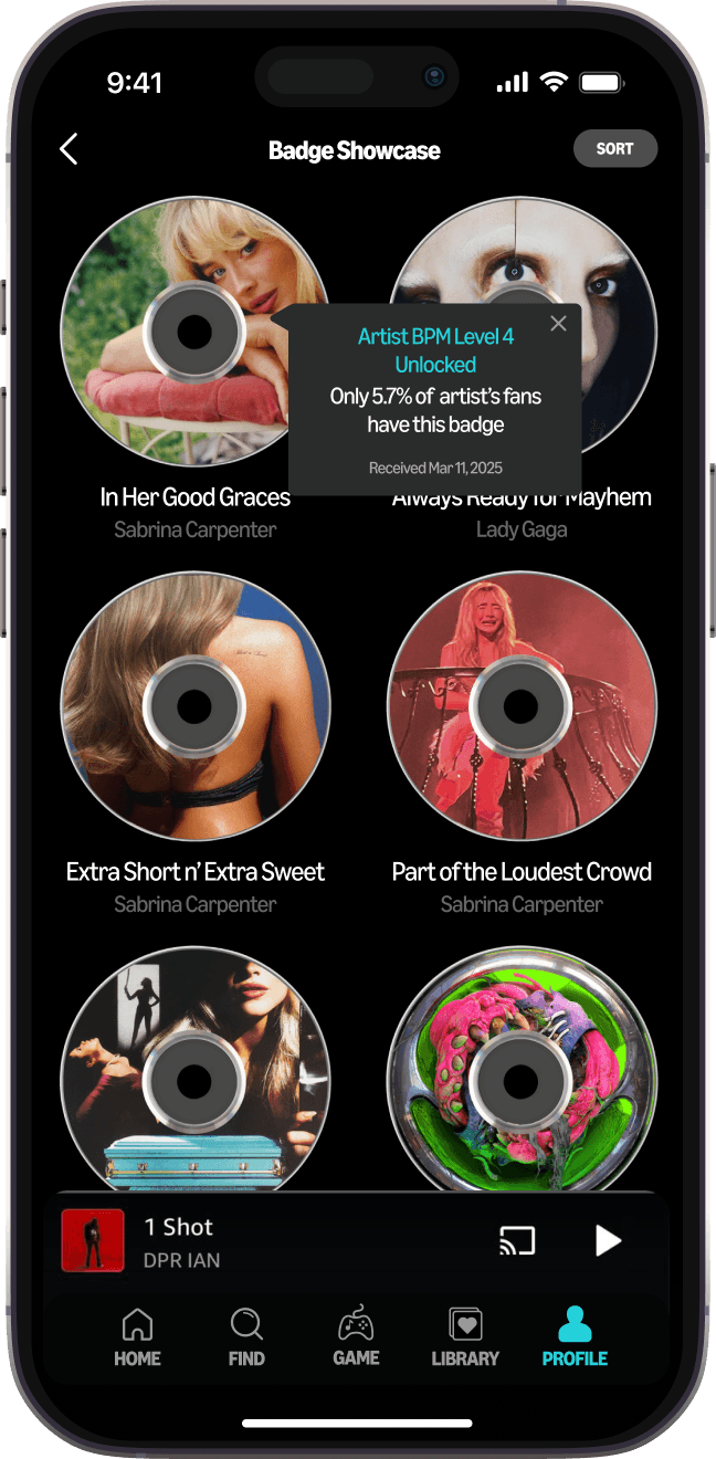 Every time a new Artist BPM Level is reached, listeners also get new artist badges to display on profile.