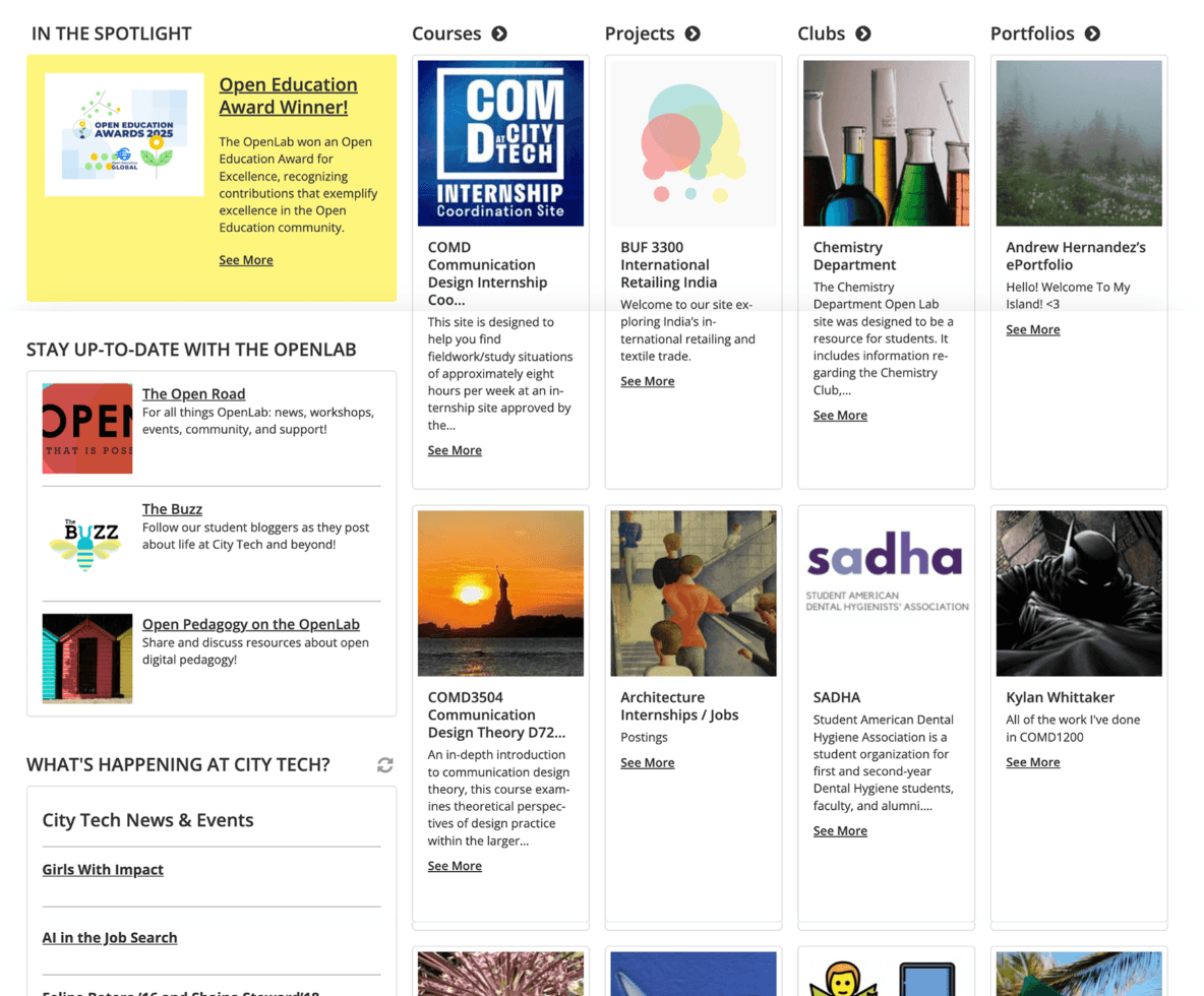 The OpenLab is an open community space built using WordPress and BuddyPress to support open education, community, and collaboration for students, faculty, and staff. They had an aging homepage that was failing to meet modern accessibility standards. The legacy design suffered from cognitive overload, inconsistent screen reader sequencing, and several violations of WCAG 2.2 Level AA.