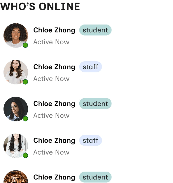 A green dot is also used to showcase activity status at a glance.