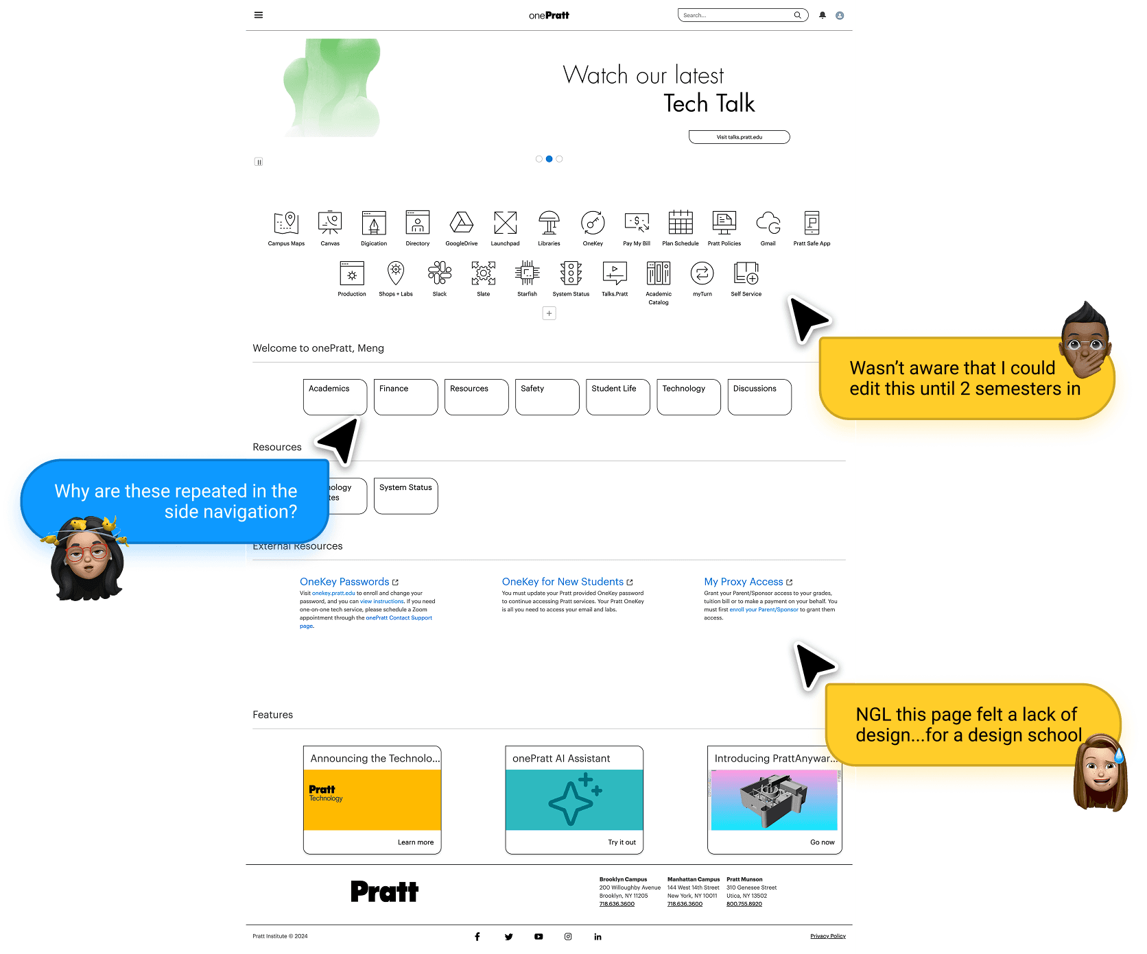 We asked around the students of Pratt Institute to see how the students truly feel about this website, and we received many negative feedback on the current design.