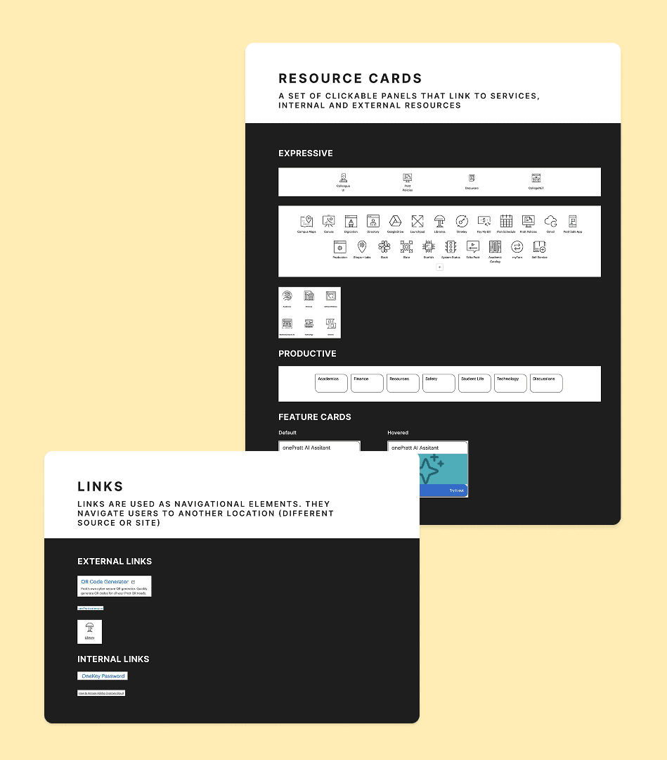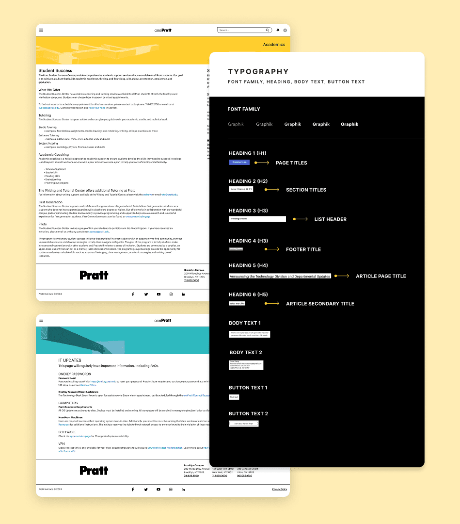Designing and testing the design system for a student & faculty facing website for Pratt Institute.