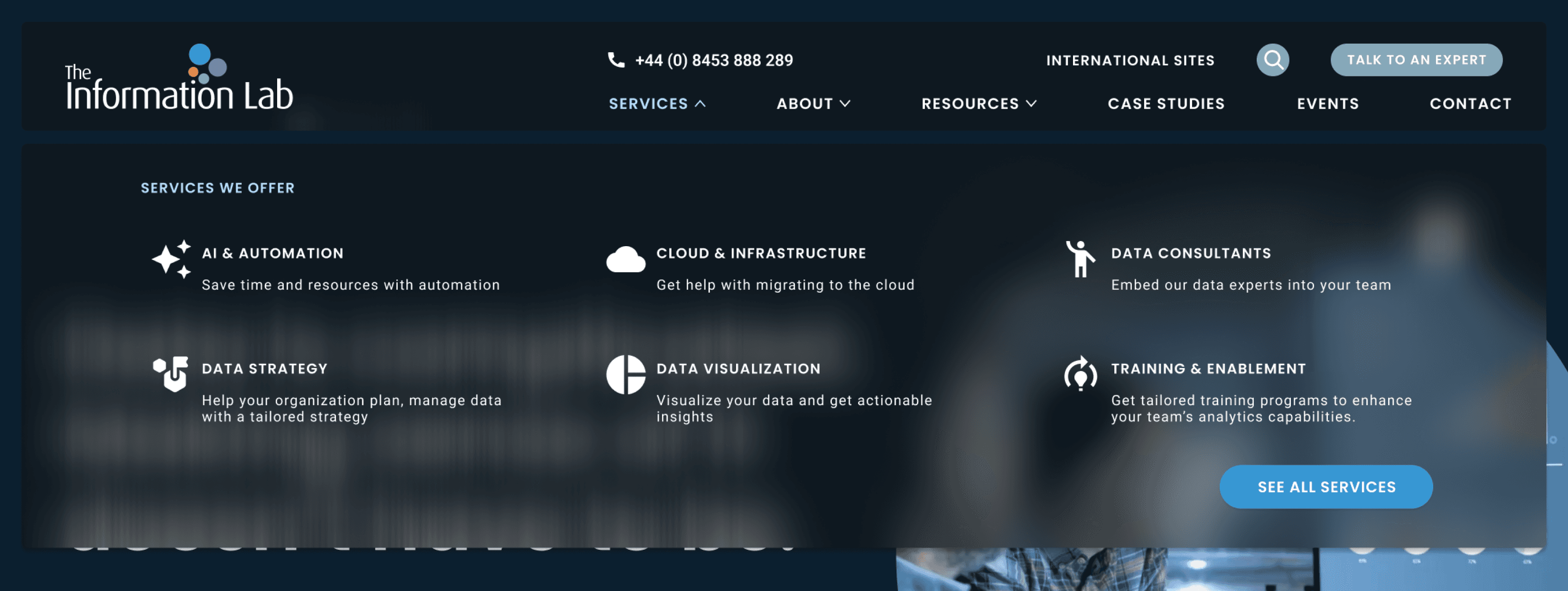 Our client The Information Lab is a NYC-based data consulting company looking to redesign their website.