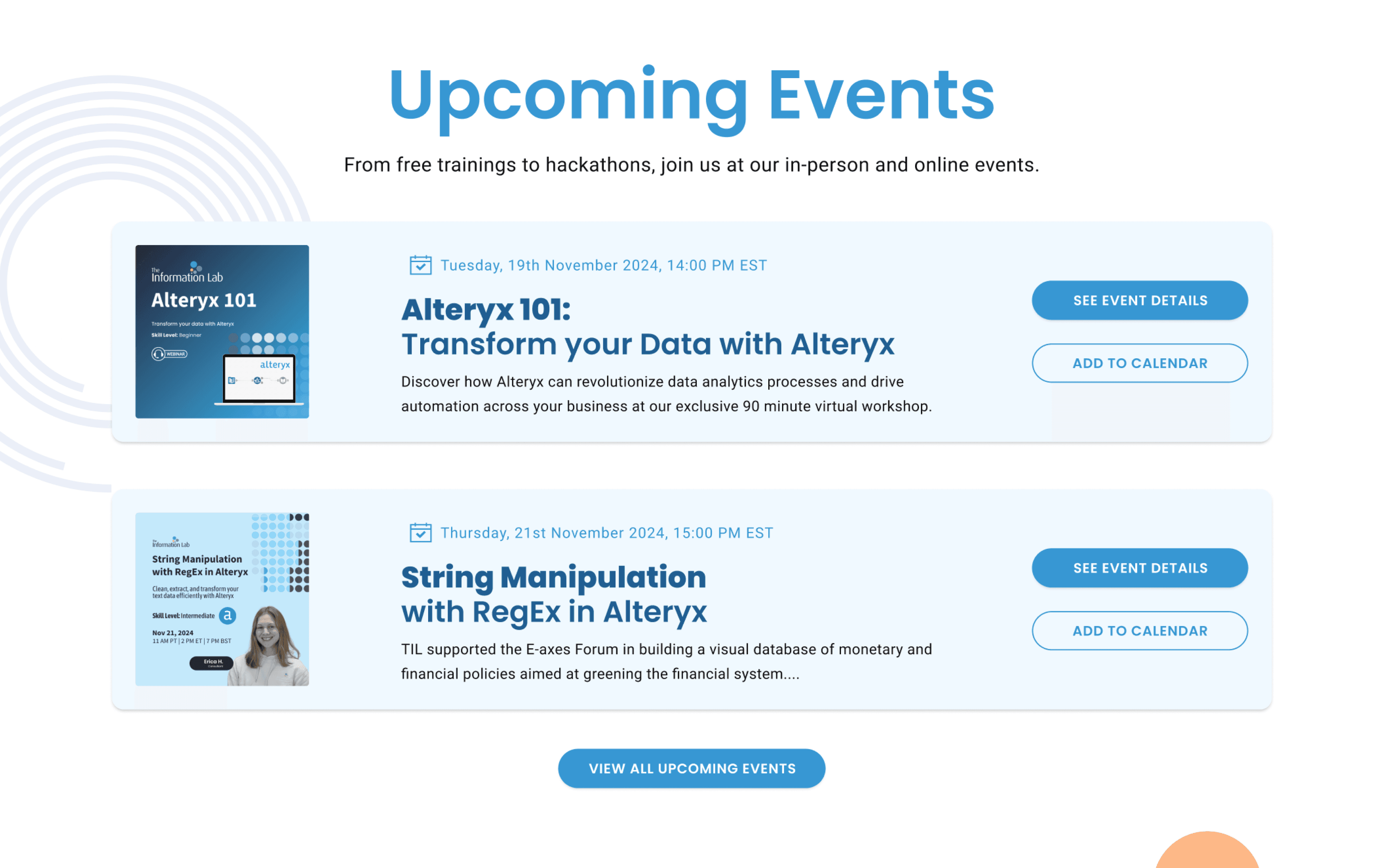 Newly designed Upcoming Events and Team Member section